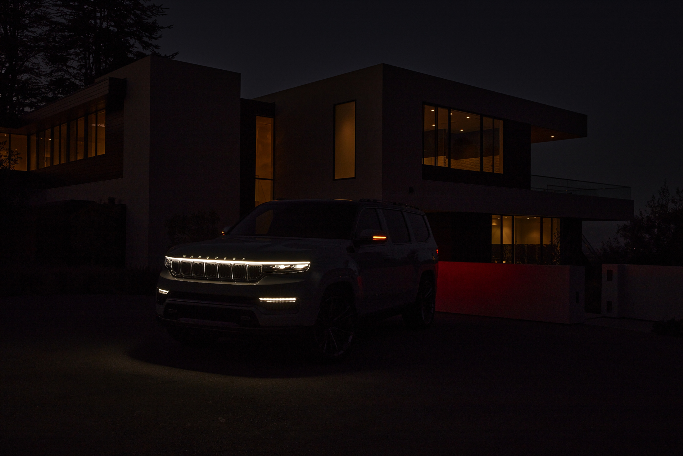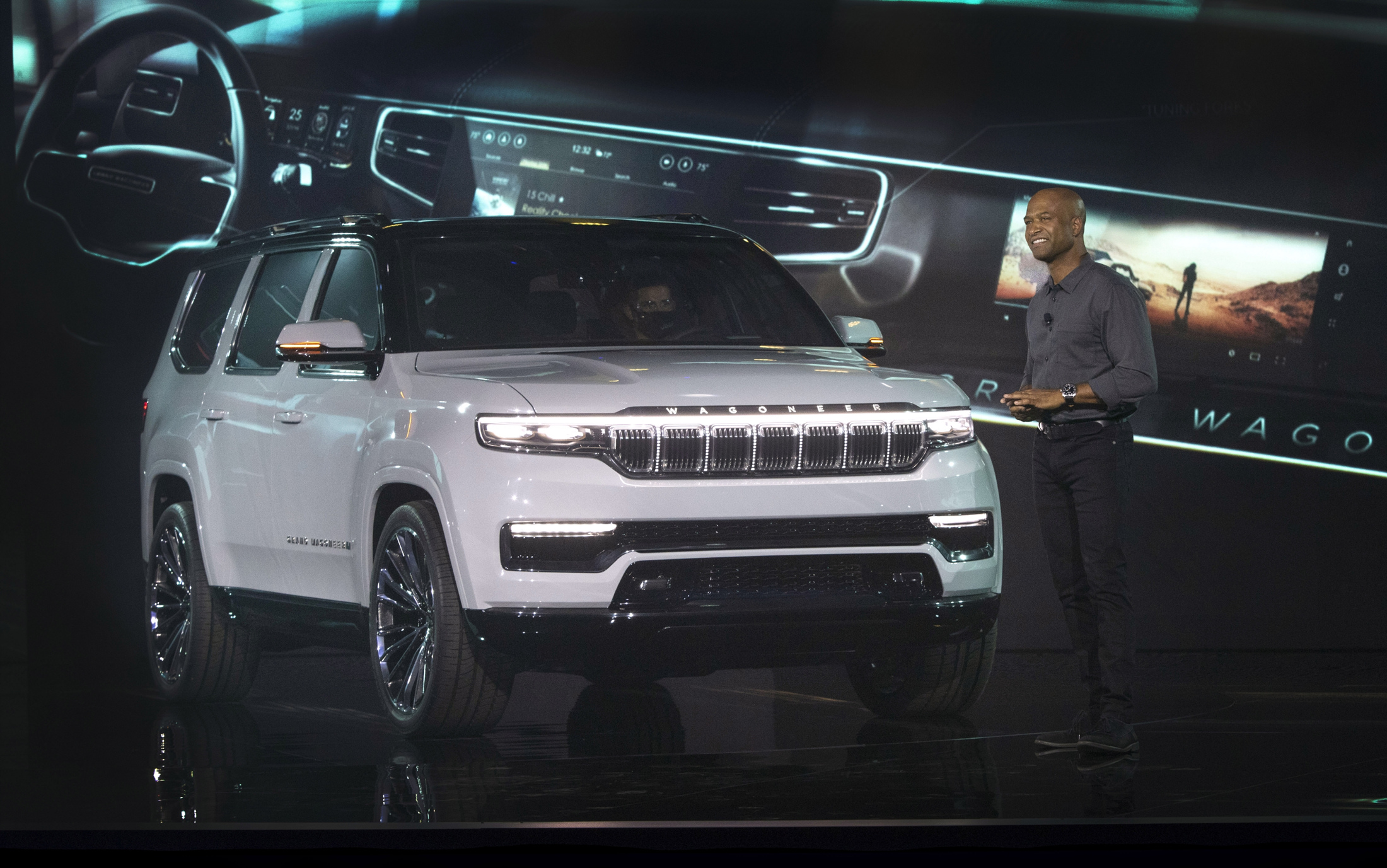 유려한 디자인의 왜고니어 전면은 언제나 클래식하고 품격있는 프리미엄 모델의 분위기를 자아내어 왔다. 이러한 공식은 새로운 그랜드 왜고니어의 콘셉트에도 적용되는데, 최초로 드넓은 3열도 추가되었다. 또한, 그랜드 왜고니어 콘셉트는 다양한 종류의 첨단 프리미엄 기술을 자랑한다. 전동화 파워트레인, 정교한 4x4 오프로드 시스템, SUV에 최초로 적용되는 조수석 화면 등의 최첨단 인테리어가 그 예시이다.