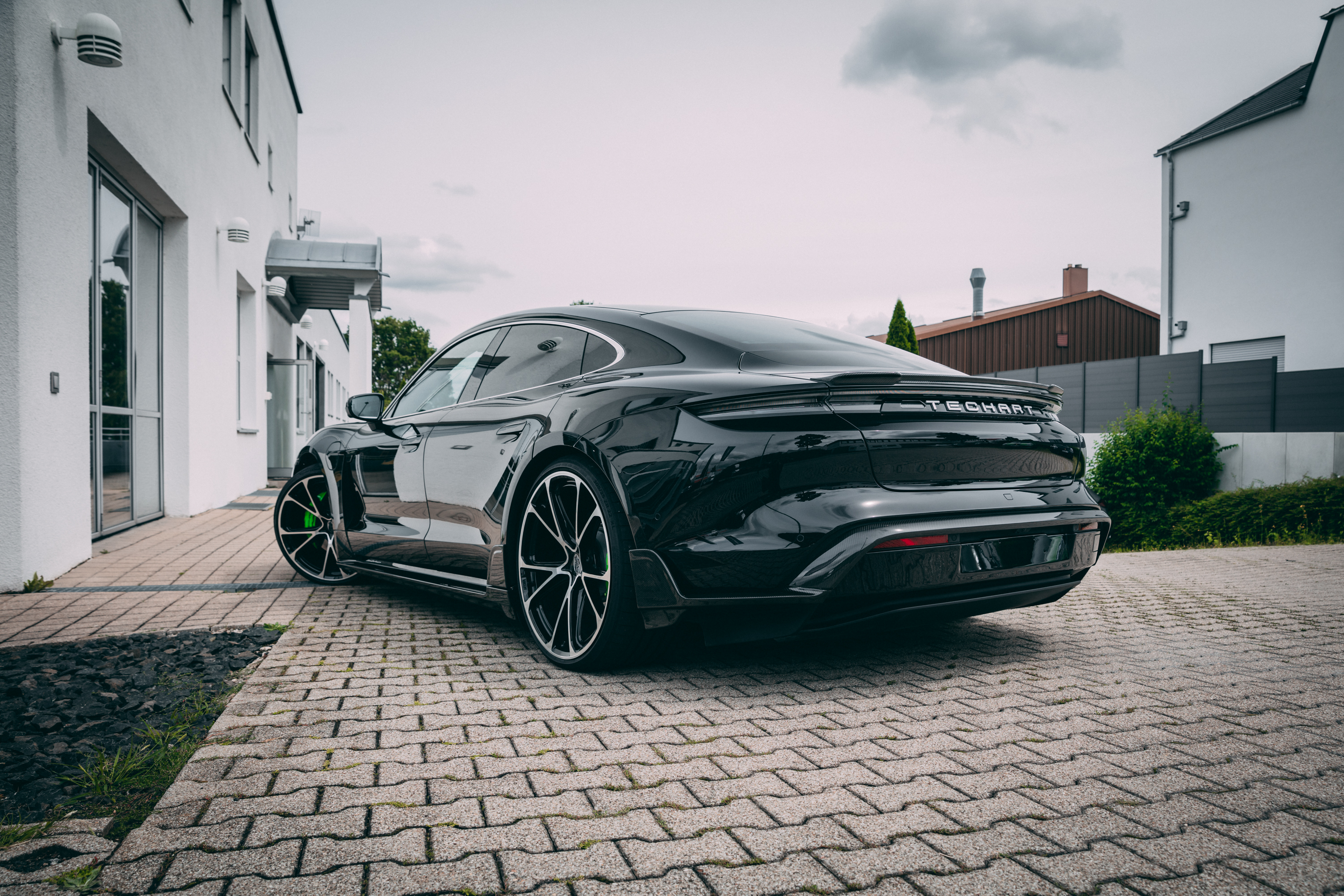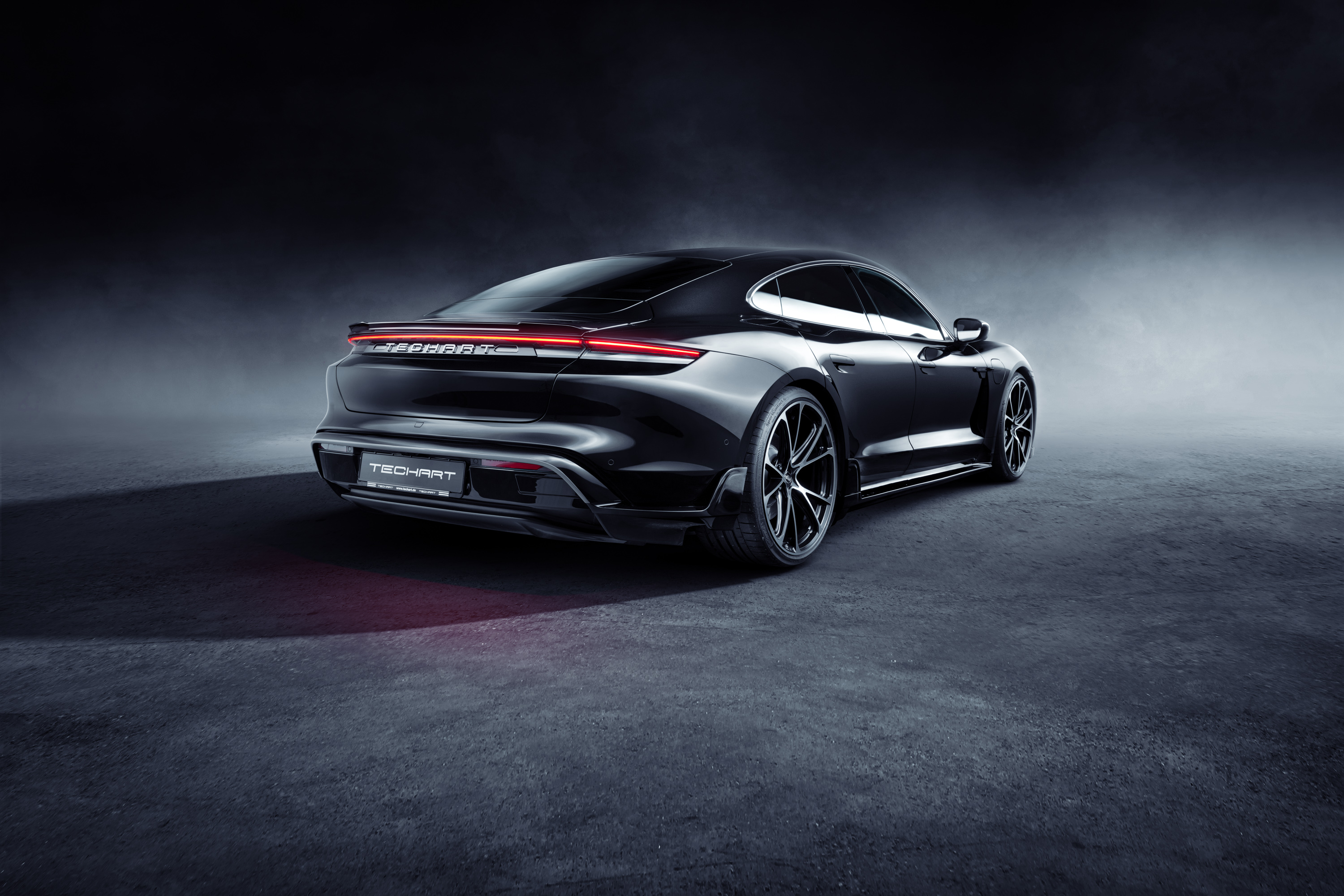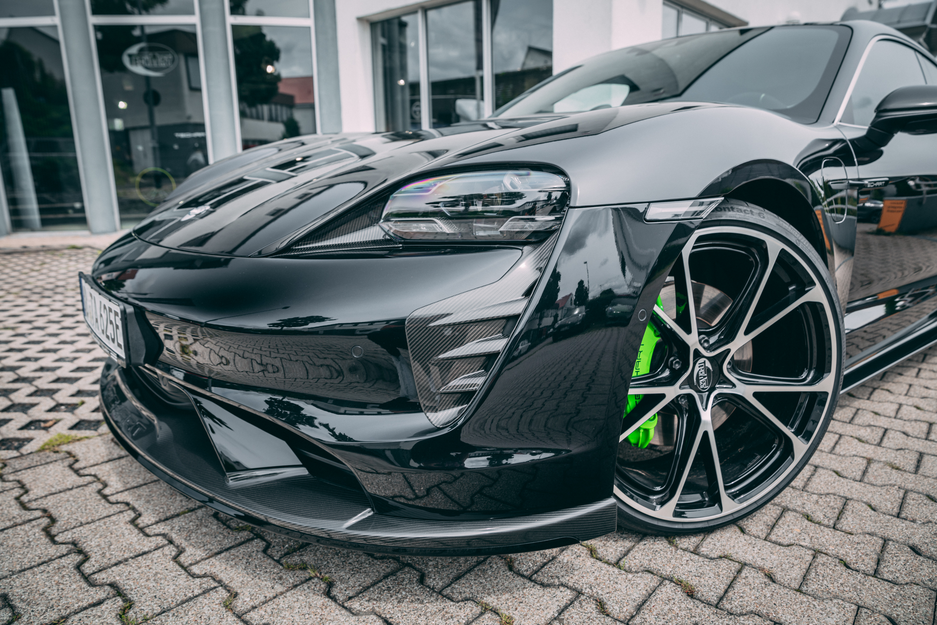 테크아트 카본 에어로킷 장착한 2022 포르쉐 타이칸 고품질 사진 원본