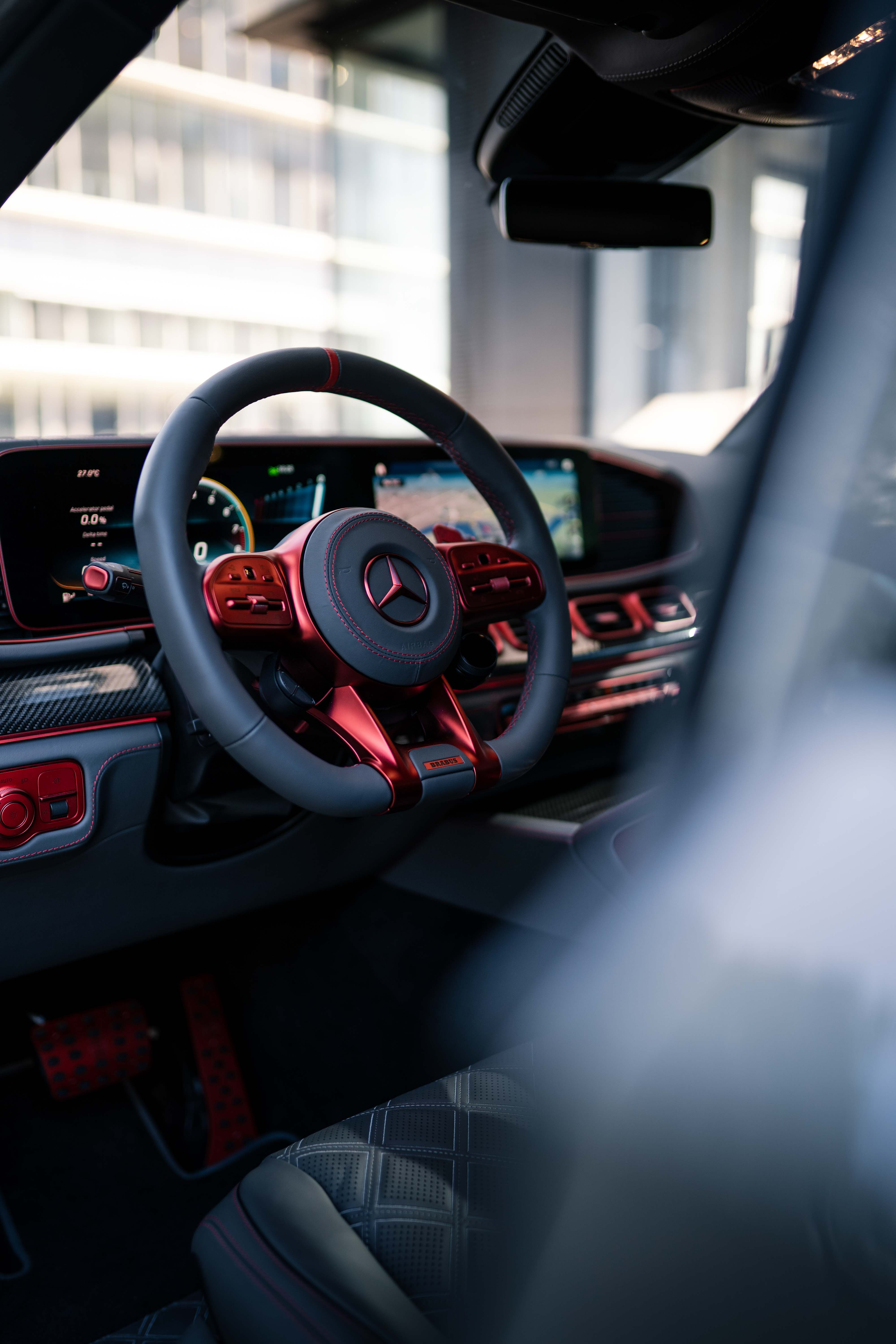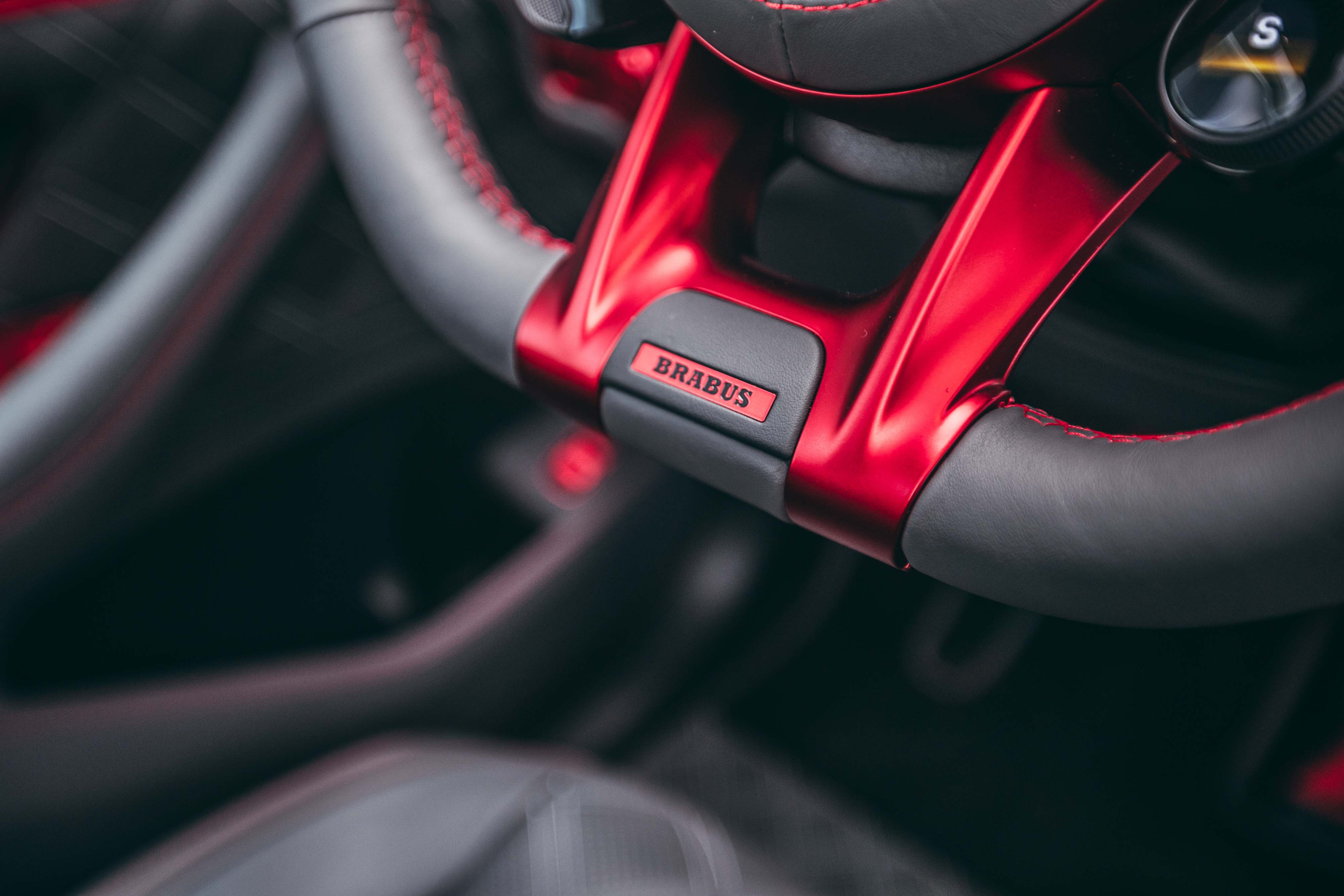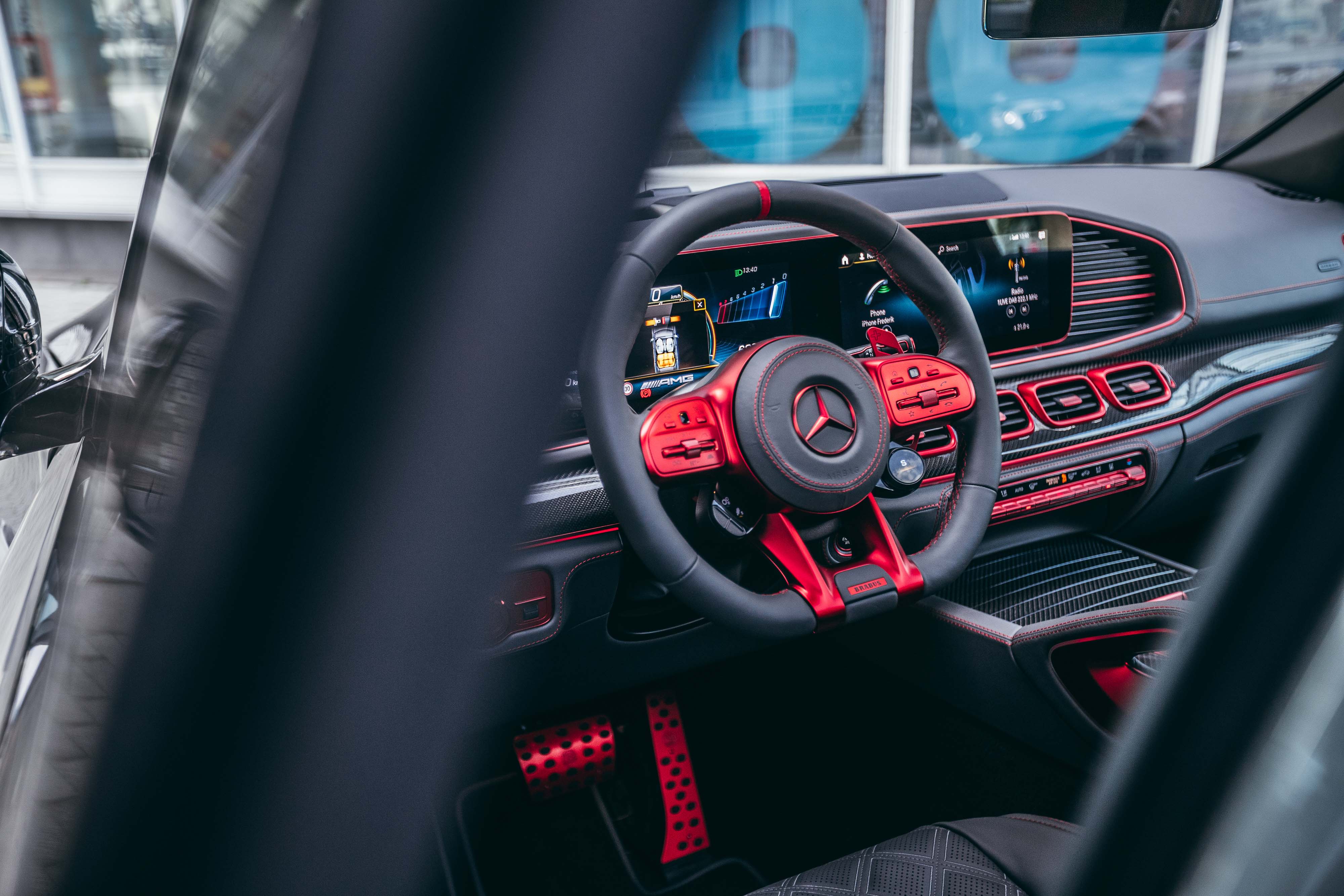 실내는 여느 브라부스와 비슷한 흐름이다. 다만 레드 포인트를 주어 강렬하다. 최고급 가죽과 카본으로 도배한 느낌이다. 브레이크와 가속 페달도 알루미늄으로 만들고 붉게 물들였다.