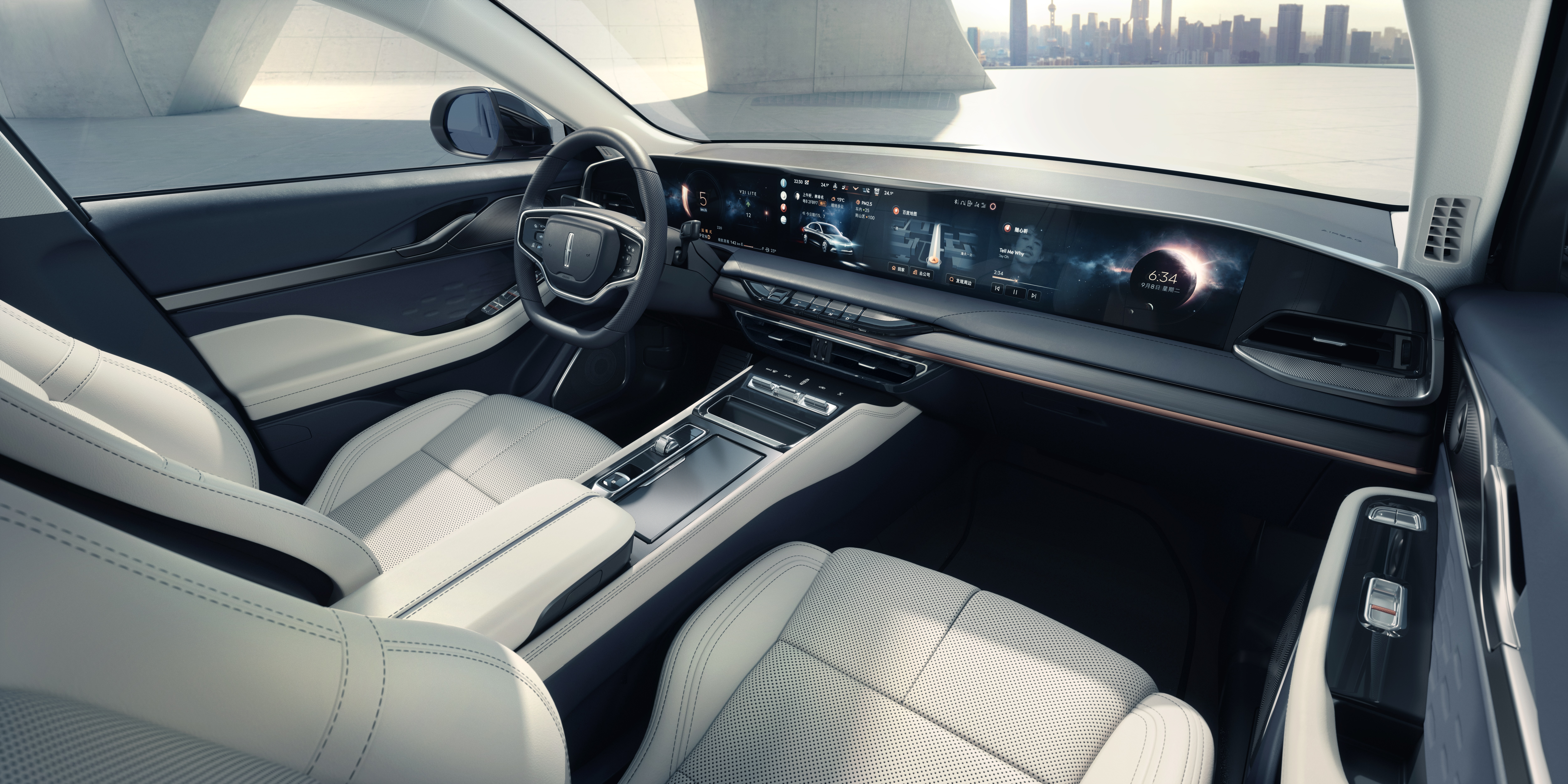 실내는 디지털의 향연입니다. 12.3인치 풀 컬러 디지털 클러스터와 함께 27인치 가로형 모니터가 대시보드의 대부분을 장식하고 있습니다. 중국 특화를 거친 싱크 플러스 인포테인먼트 시스템과 레벨2 + 수준의 자율주행 기술도 담았네요.