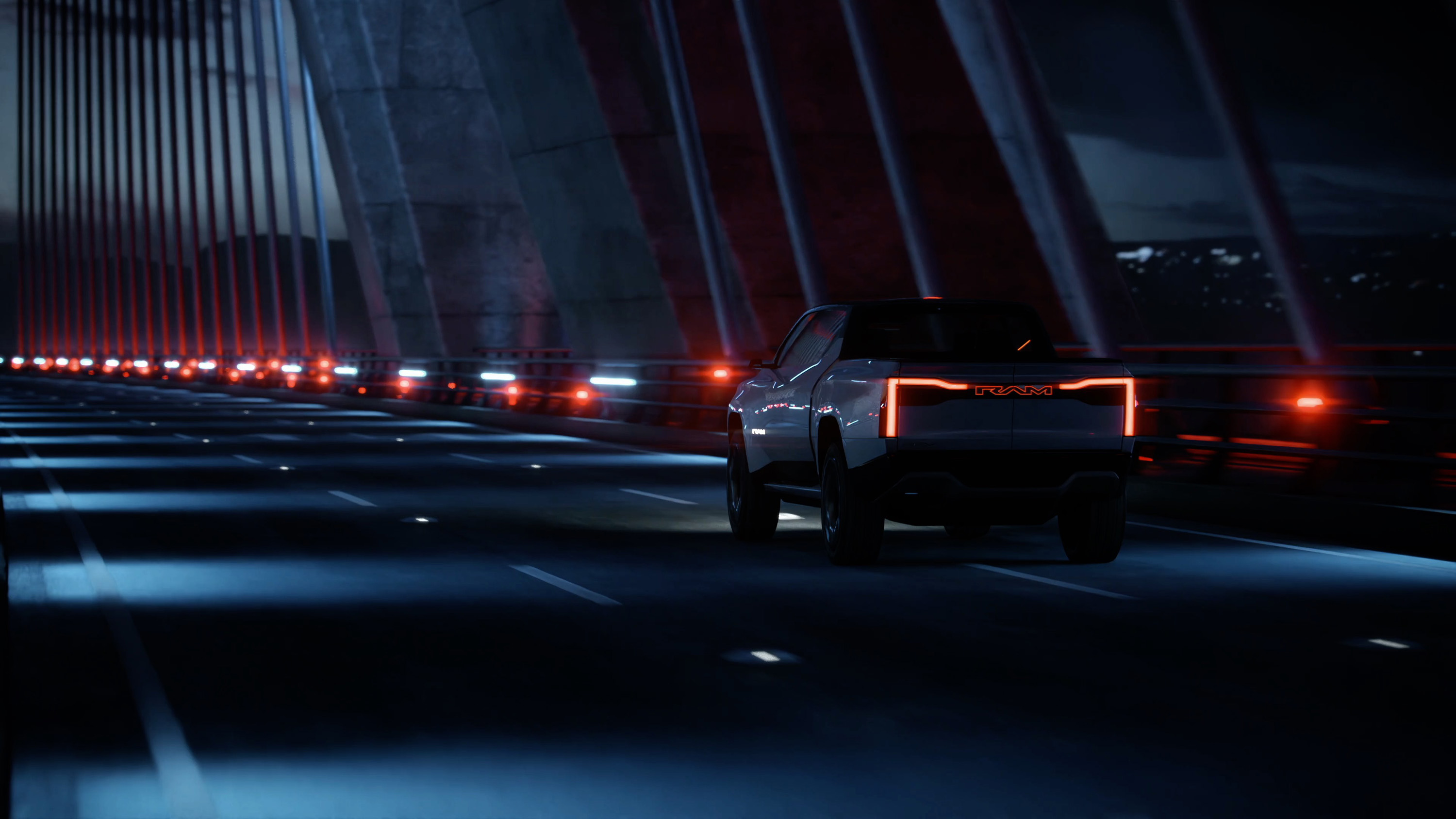 새로운 아키텍처로 인해 실내 공간이 대폭 넓어지고 실내 길이가 길어졌으며, 배터리의 크기 때문에 더 많은 화물을 적재할 수 있습니다.램의 레일 어태치먼트/플로어 트랙 시스템인 "Ram Track"은 좌석과 콘솔을 위한 캐빈 유연성뿐만 아니라 사용 가능한 타이다운 또는 기타 저장 가능성을 제공합니다."람 트랙"은 또한 프렁크와 침대에 통합되어 있어 앞뒤로 진정한 유연성을 제공합니다.