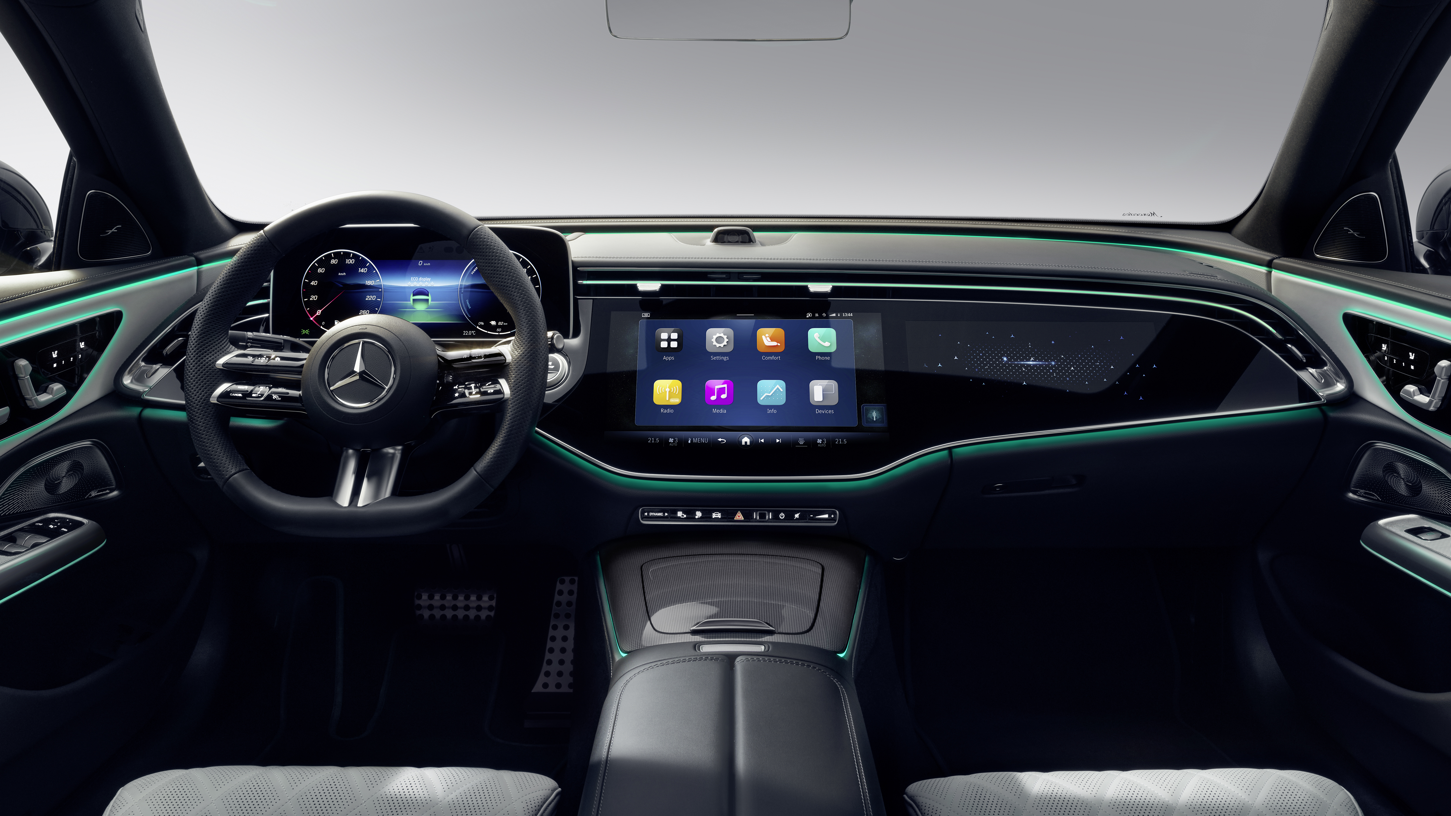 더 뉴 E-클래스에서 특히 몰입감 넘치는 엔터테인먼트 경험을 기대할 수 있습니다. 음악, 게임, 스트리밍 콘텐츠를 차 안에서 거의 모든 감각으로 경험할 수 있습니다. 인테리어의 디지털 혁신 덕분에 E-Class는 이제 더욱 지능화되어 새로운 차원의 개인화 및 상호 작용을 실현합니다. 동시에, 전자 아키텍처는 하드웨어 중심이 아닌 소프트웨어 중심입니다. 이는 향후 인테리어 시스템을 개별적으로 업데이트할 수 있는 기반이 됩니다.