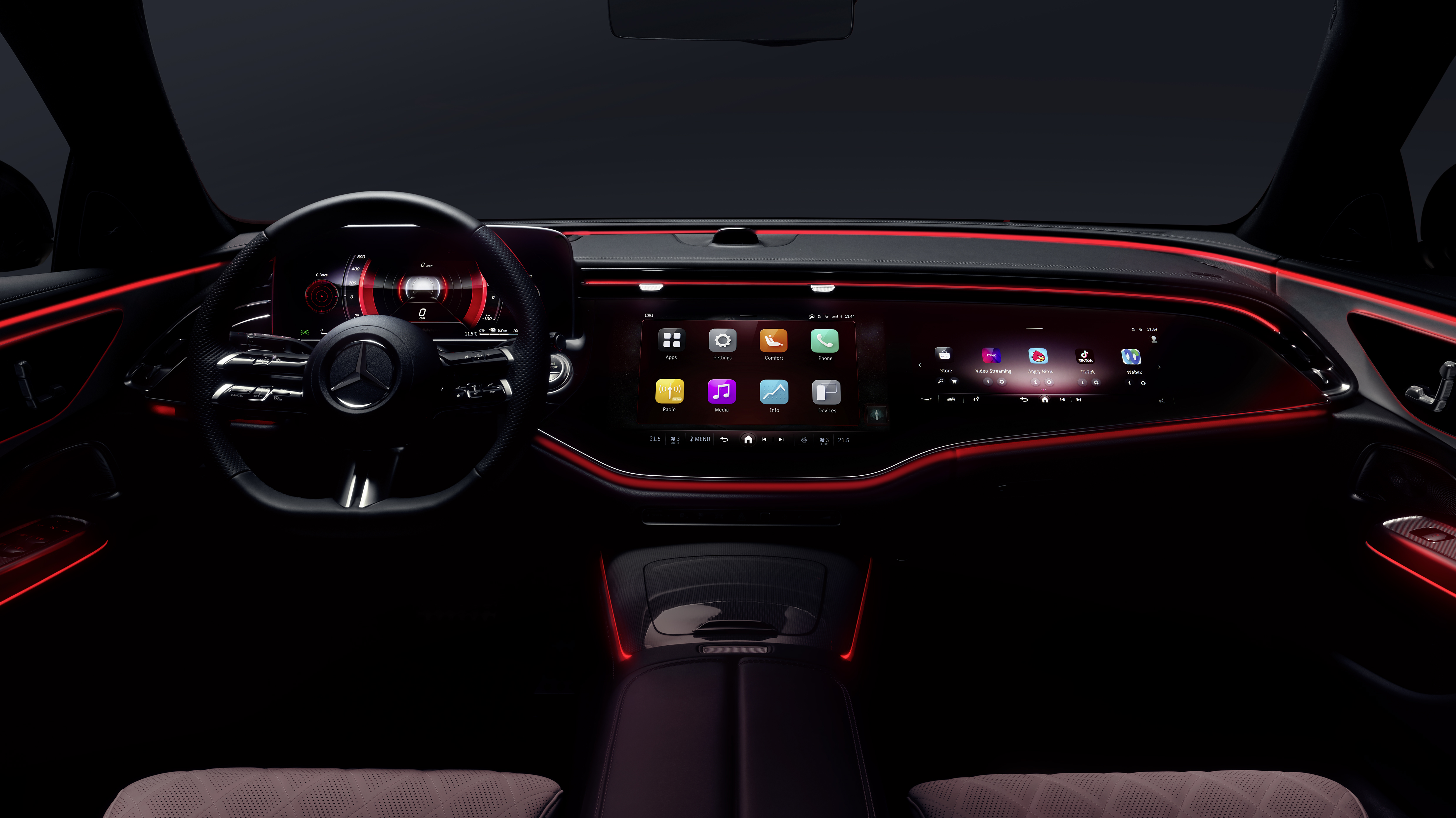 E-Class의 엔터테인먼트 프로그램은 그 어느 때보다 인터랙티브합니다. 메르세데스-벤츠의 소프트웨어 전문가들은 타사 앱을 설치할 수 있는 새로운 호환성 계층을 개발했습니다[4]. 더 뉴 E-클래스[5] 출시와 함께 중앙 디스플레이에서 엔터테인먼트 플랫폼 "TikTok", 게임 "Angry Birds", 협업 애플리케이션 "Webex", 오피스 애플리케이션 "Zoom", 브라우저 "Vivaldi" 등의 앱을 사용할 수 있습니다. 또한 ZYNC 엔터테인먼트 포털[6](선택 사항)은 하나의 사용자 인터페이스를 통해 중앙 및 조수석 디스플레이에서 비디오 스트리밍, 주문형 콘텐츠, 인터랙티브 경험, 지역 비디오 프로그램, 스포츠, 뉴스, 게임 등을 다양하게 제공합니다.