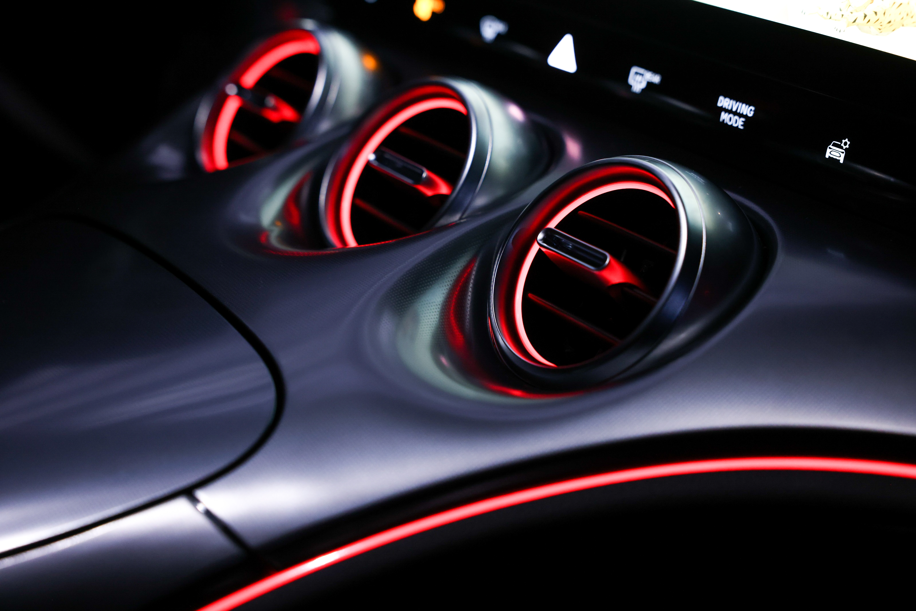 실내는 터빈 흡입구를 연상시키는 원형 형상으로 스포티한 에너지를 발산하는 콕핏이 차분하고 세련된 구조에 볼륨감 있는 요소를 더했습니다. 조각된 대시보드는 높은 콘솔로 매끄럽게 이어지며, 12.8인치 높이의 중앙 스크린이 있는 중앙 콕핏을 수용합니다.