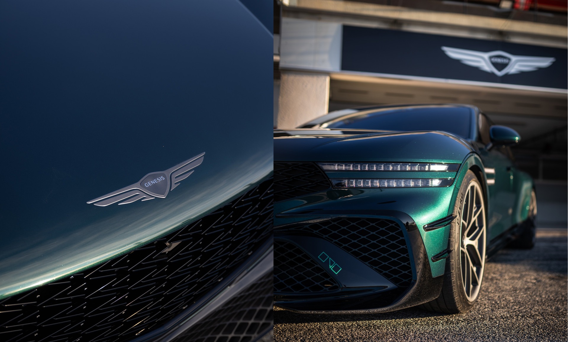전면부는 크레스트 그릴과 투라인 램프 등 제네시스 고유의 디자인 요소를 유지하되 더 공격적으로 다듬었다. 마그마 배지가 새겨진 범퍼 양쪽에 카나드를 두고, 확장된 휠아치에는 22인치 전용 휠을 장착했다.